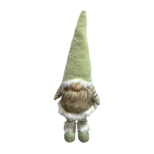 Gnomo 24x16x58 con luz en barba y movimiento, gorro verde con traje beige y blanco a pila