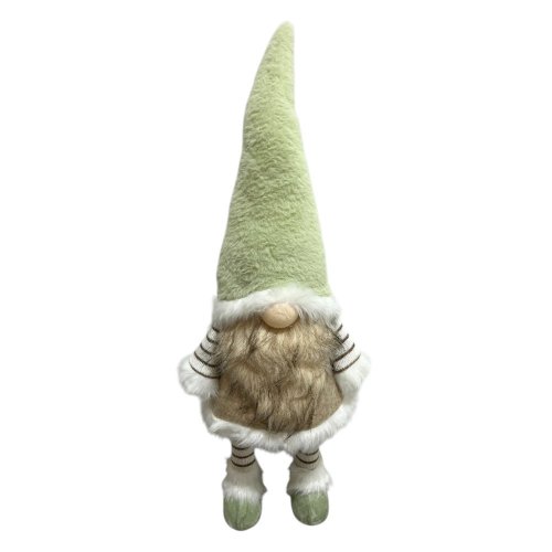 Gnomo 26x20x72 con luz en barba y movimiento, gorro verde con traje beige y blanco a pila